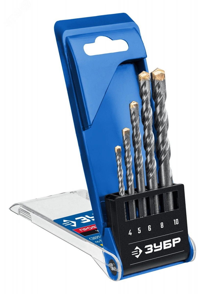 Набор сверл по бетону усиленных, ПРОФЕССИОНАЛ 5 шт: d 4-5-6-8-10 мм 3-х гранный хвостовик