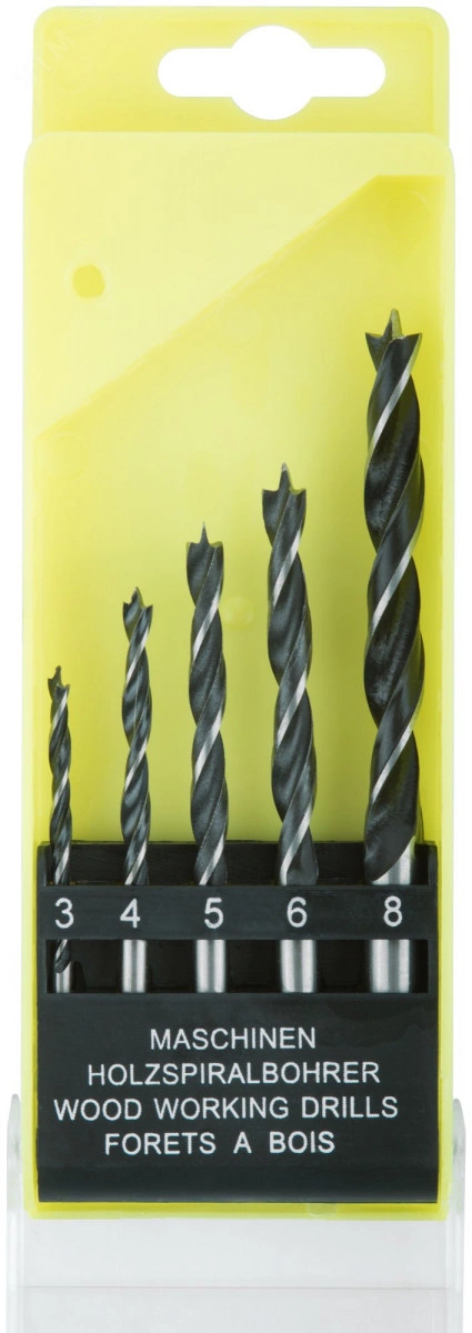 Набор сверл по дереву, пластиковый бокс, 5 шт.(3-4-5-6-8 мм)