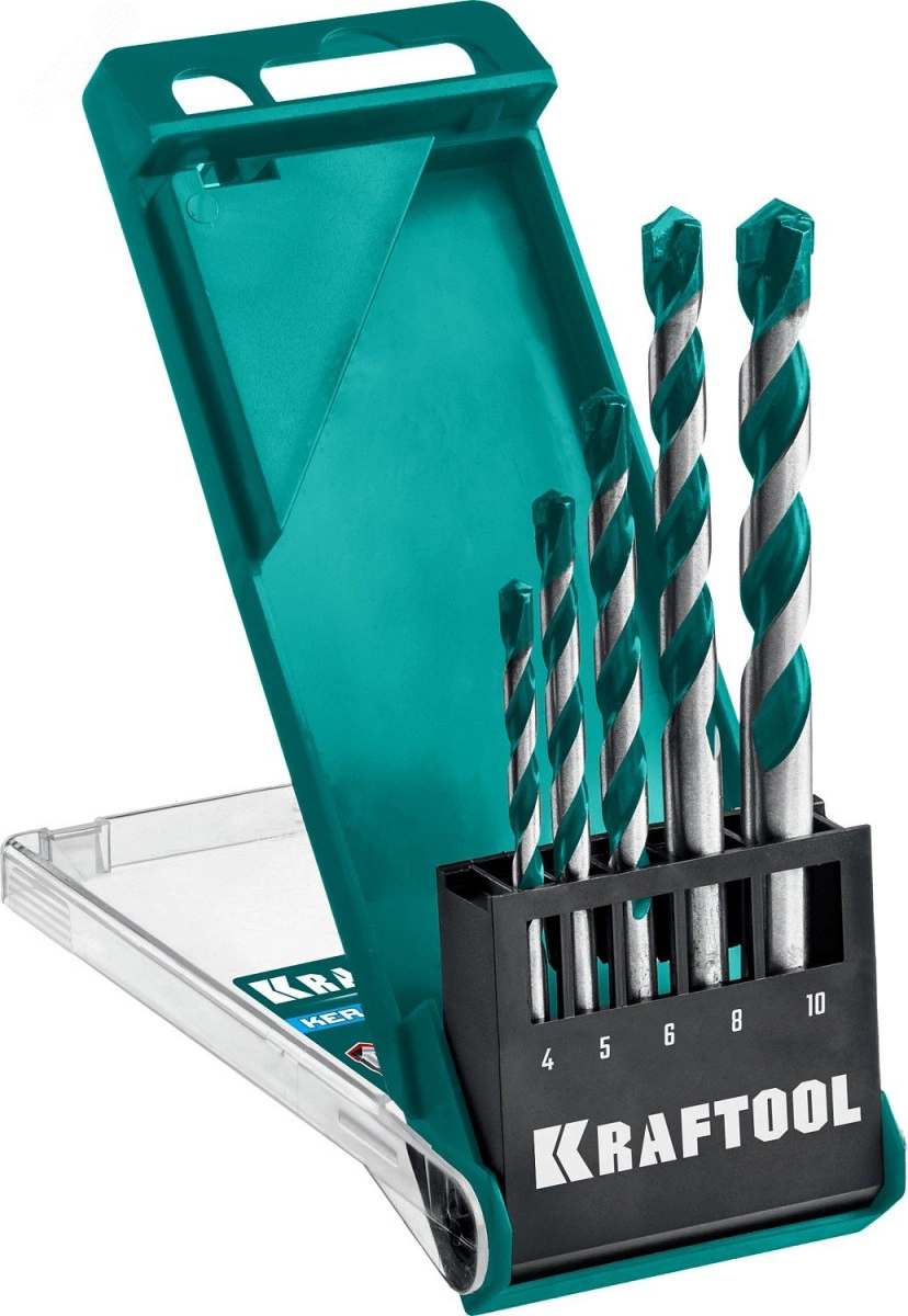Набор сверл по керамограниту с твердосплавной пластиной KERAMO 5 шт: 4-5-6-8-10 мм