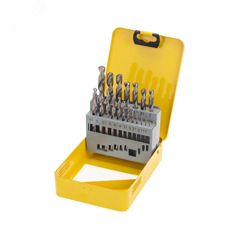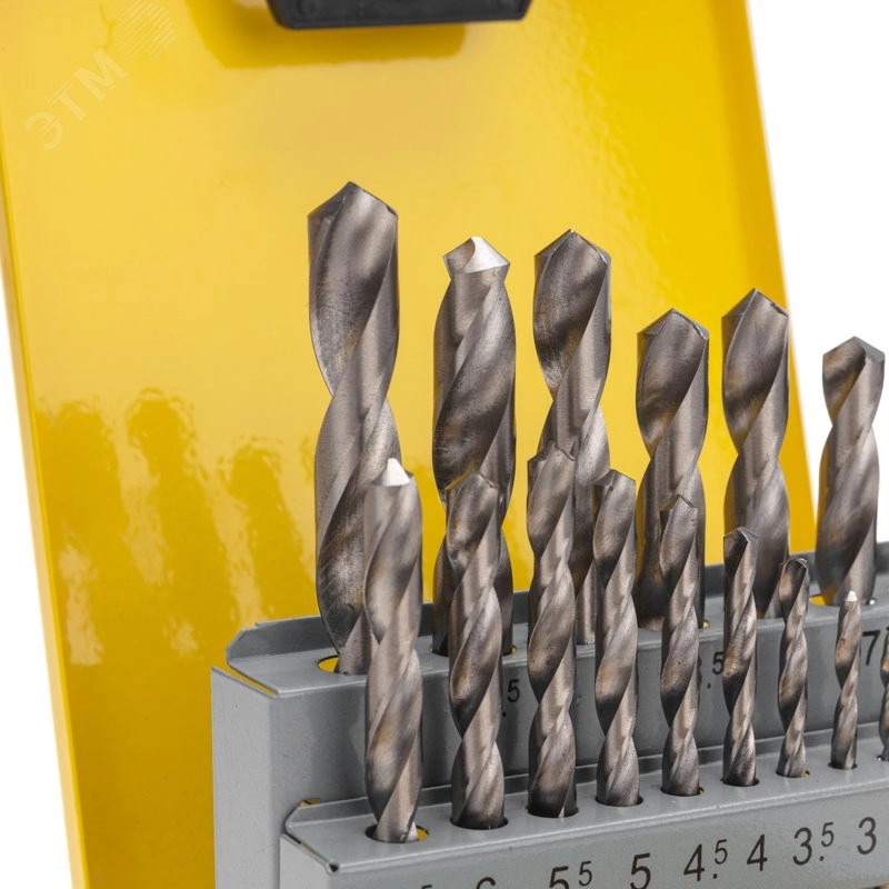 Набор сверл по металлу, 1-10 мм (через 0,5 мм), HSS, цилиндрический хвостовик, металлический кейс, 19 шт.