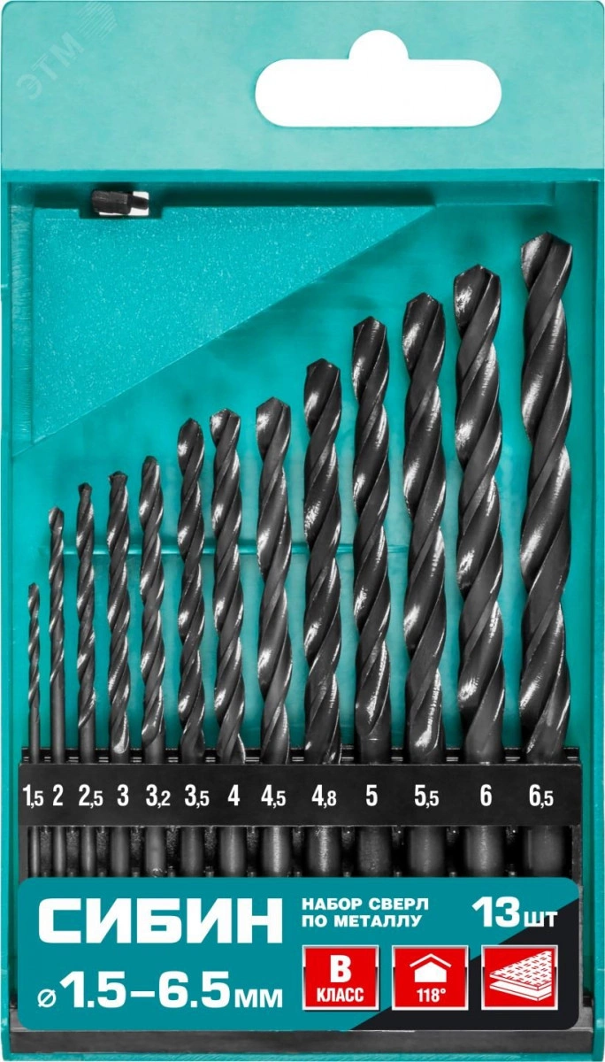 Набор сверл по металлу 13 шт, (1.5-6.5 мм), быстрорежущая сталь, класс В
