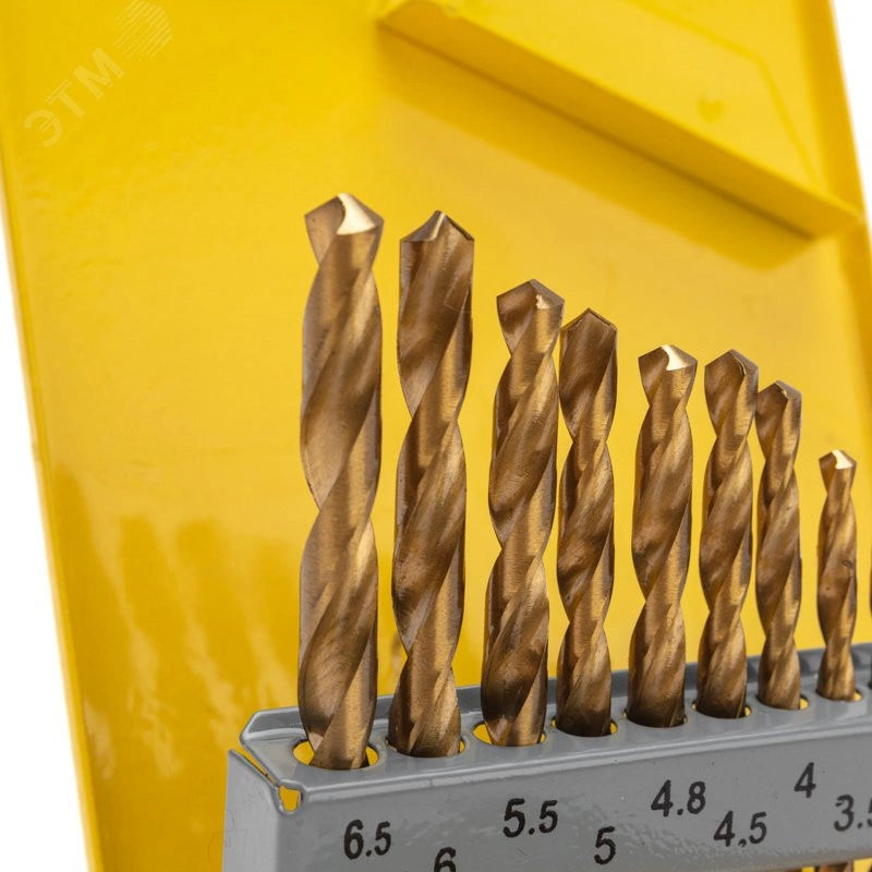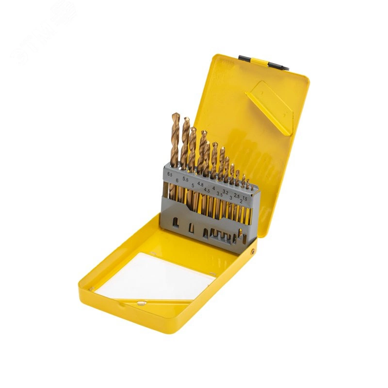 Набор сверл по металлу, 1,5-6,5 мм (через 0,5 мм, 3,2 мм, 4,8 мм), НSS, ТИТАН, цилиндрический хвостовик, металлический кейс, 13 шт.