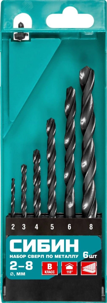 Набор сверл по металлу 6 шт, (2-8 мм), быстрорежущая сталь, класс В