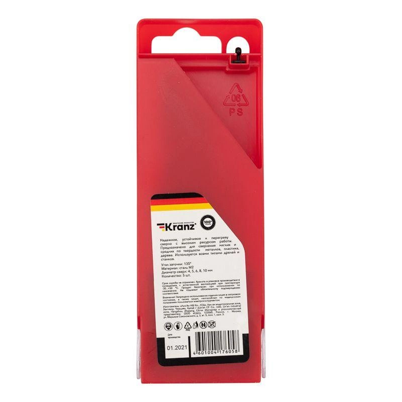 Набор сверл по металлу (HSS) диаметр 4.0-10.0мм (5 шт.) Kranz KR-91-0632