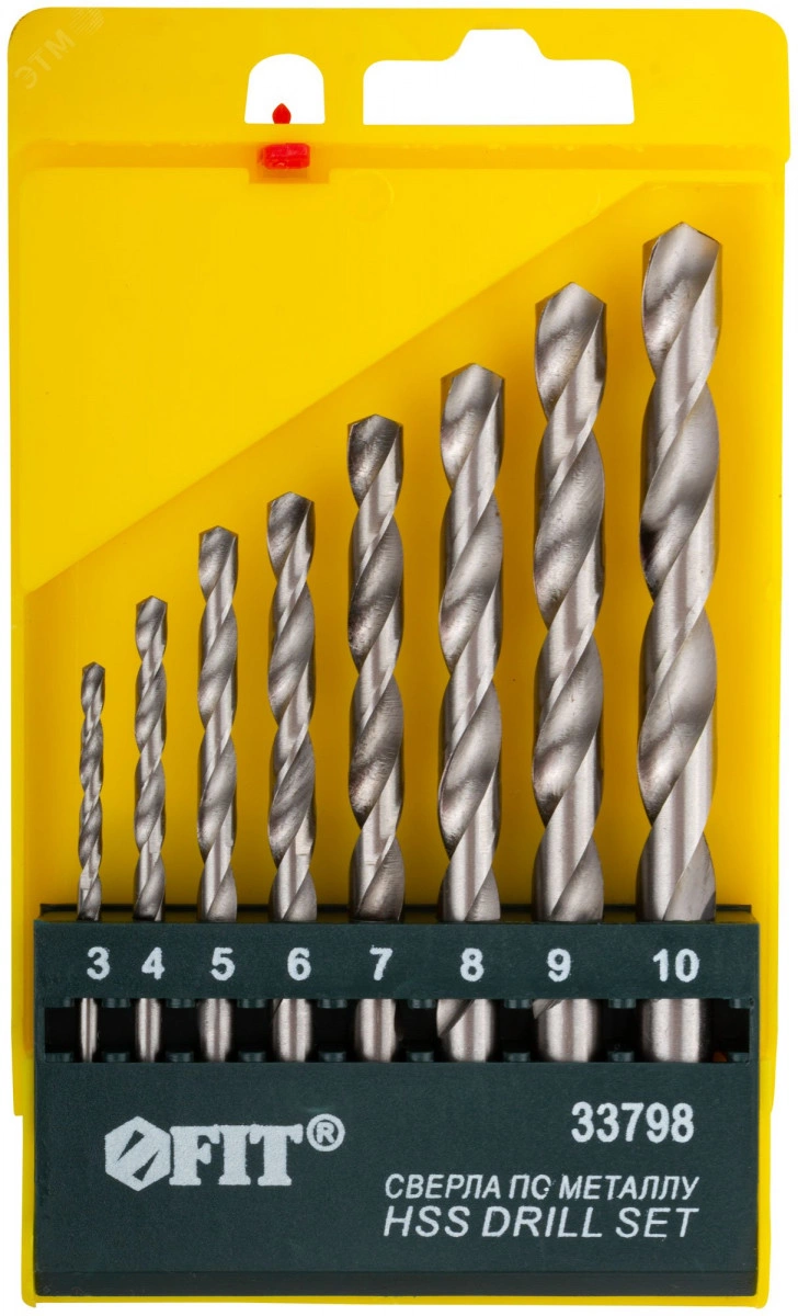 Набор сверл по металлу HSS полированных, 8 шт (3-4-5-6-7-8-9-10 мм)