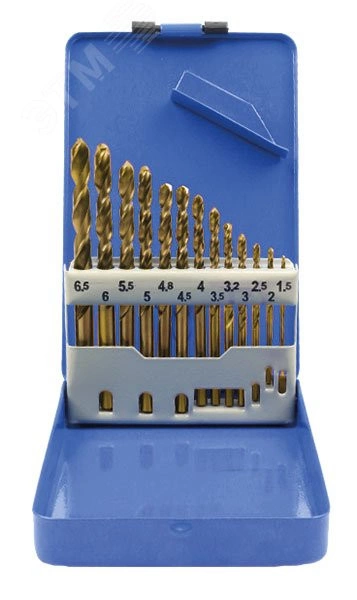 Набор сверл по металлу HSS шлифованные, титановое покрытие, угол заточки 135град, мет.бокс, 25 шт. (1-13 мм, через 0,5 мм)