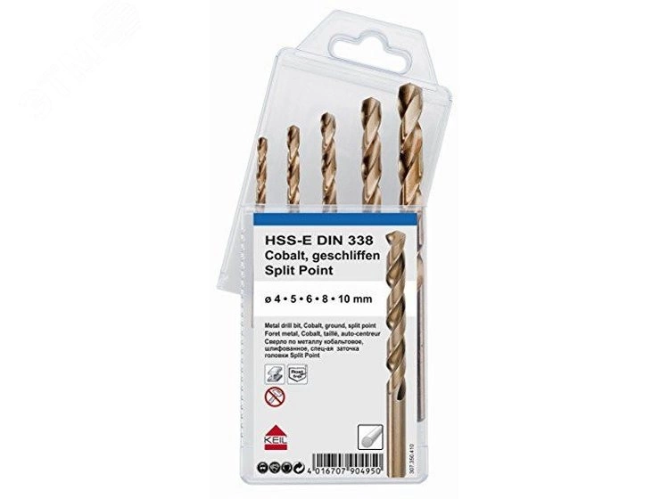 Набор сверл по металлу кобальтовое, 4, 5, 6, 8, 10 мм, (5 шт)