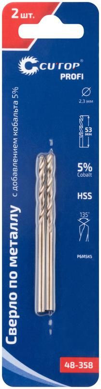 Набор сверл по металлу Profi 2.3х53мм с кобальтом 5проц. (уп.2шт) Cutop 48-358