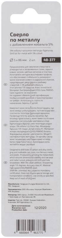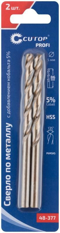 Набор сверл по металлу Profi 5х86мм с кобальтом 5проц. (уп.2шт) Cutop 48-377