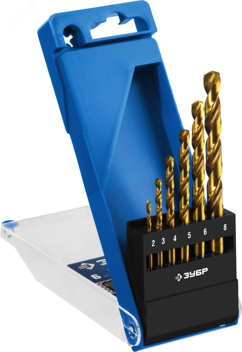 Набор сверл по металлу, сталь Р6М5, класс А , титановое покрытие ТИТАН 6шт(2-8мм)