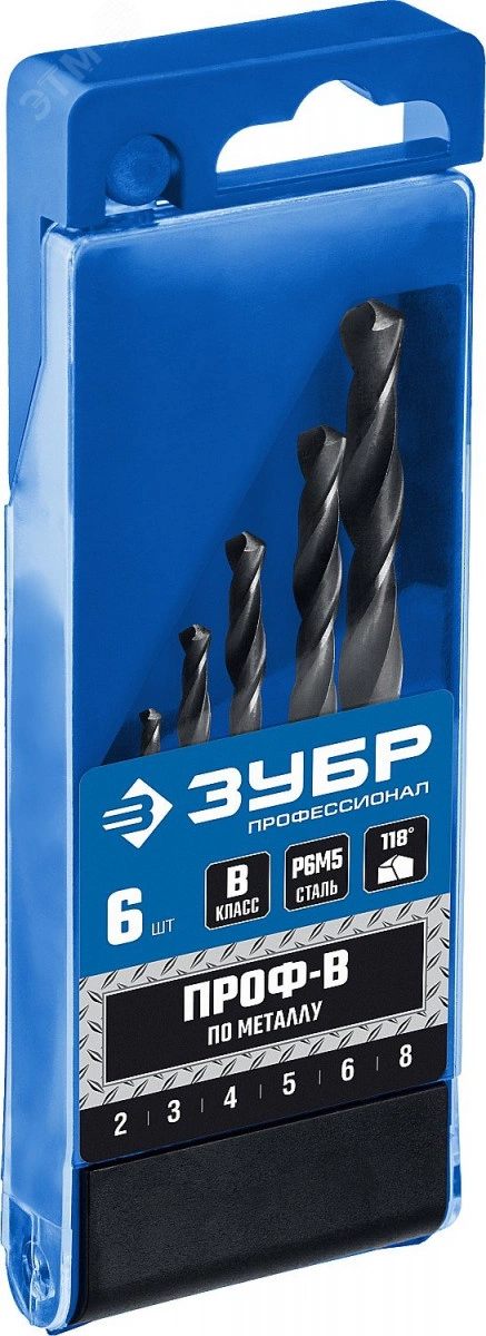 Набор сверл по металлу сталь Р6М5 класс В, ПРОФ-В 6шт(2-8мм)