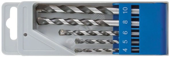 Набор сверл победитовых ударных, цилиндрический хвостовик, 5 шт (4-5-6-8-10 мм)
