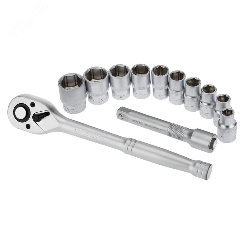 Набор головок REXANT используется для монтажа и демонтажа резьбовых соединений. Инструменты изготовлены из хромованадиевой износостойкой и долговечной стали с хромоникелевым покрытием. Съемные торцевые головки (10 шт. 10, 11, 12, 13, 14, 15, 17, 19, 22 и 24 мм) имеют 6-гранный зев и посадочное место для присоединительного квадрата 1/2'. В комплект входят ключ-трещотка с переключателем, удлинитель 125 мм. Изделия поставляются в удобном металлическом кейсе.