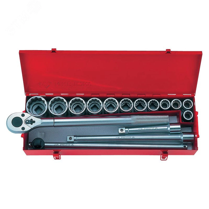 Набор торцевых головок с принадлежностями 3/4', двенадцатигранные, 21-50 мм, 16 предметов