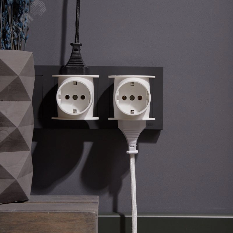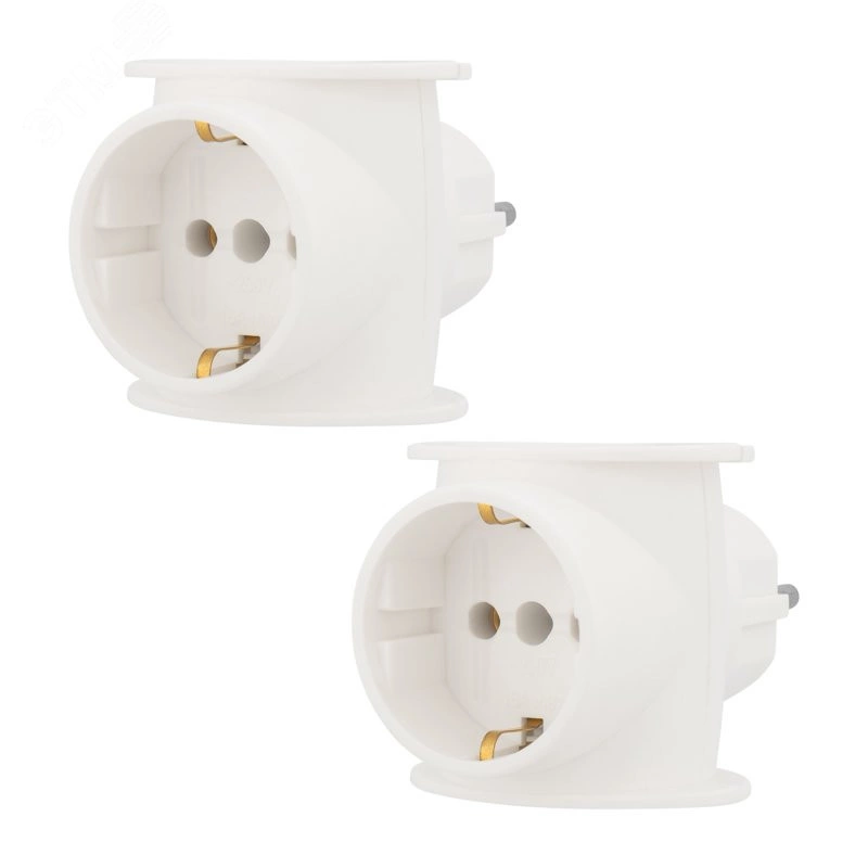 Набор тройников электрических универсальных 16 А, одно гнездо с заземлением, белый (2 шт/уп)
