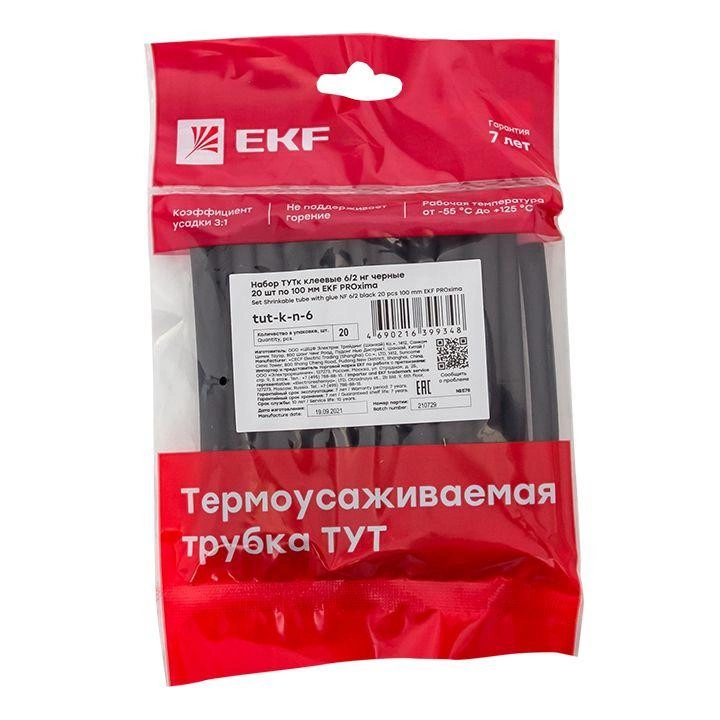 Набор трубок термоусадочных ТУТк клеевые 6/2 нг черн. по 100мм (уп.20шт) PROxima EKF tut-k-n-6
