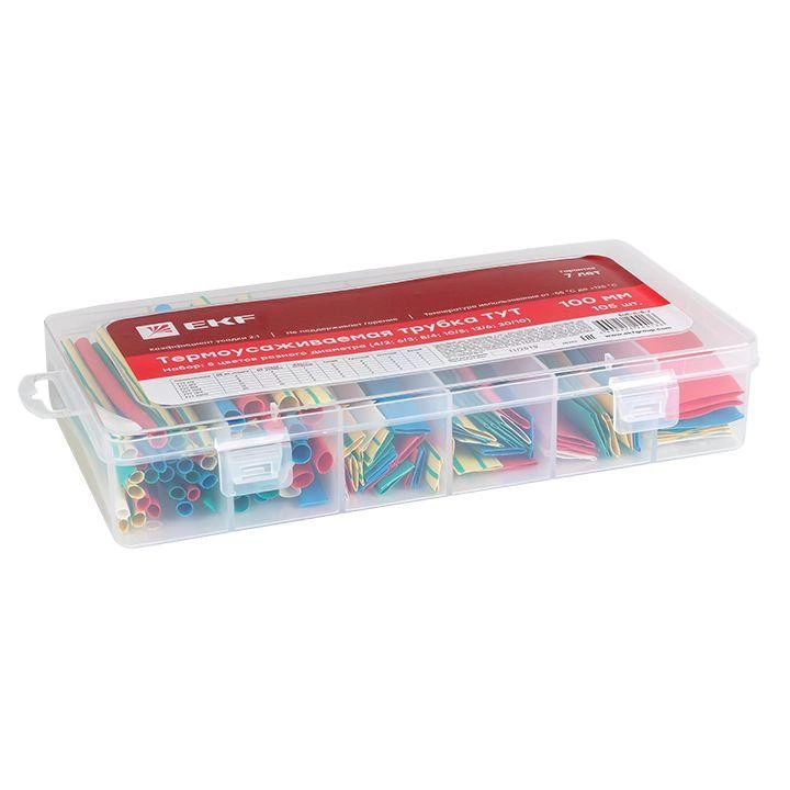 Набор ТУТ бокс: 5 цветов разного диаметра (4/2; 6/3; 8/4; 10/5; 12/6; 20/10) 100мм 105шт PROxima EKF tut-n-5-r