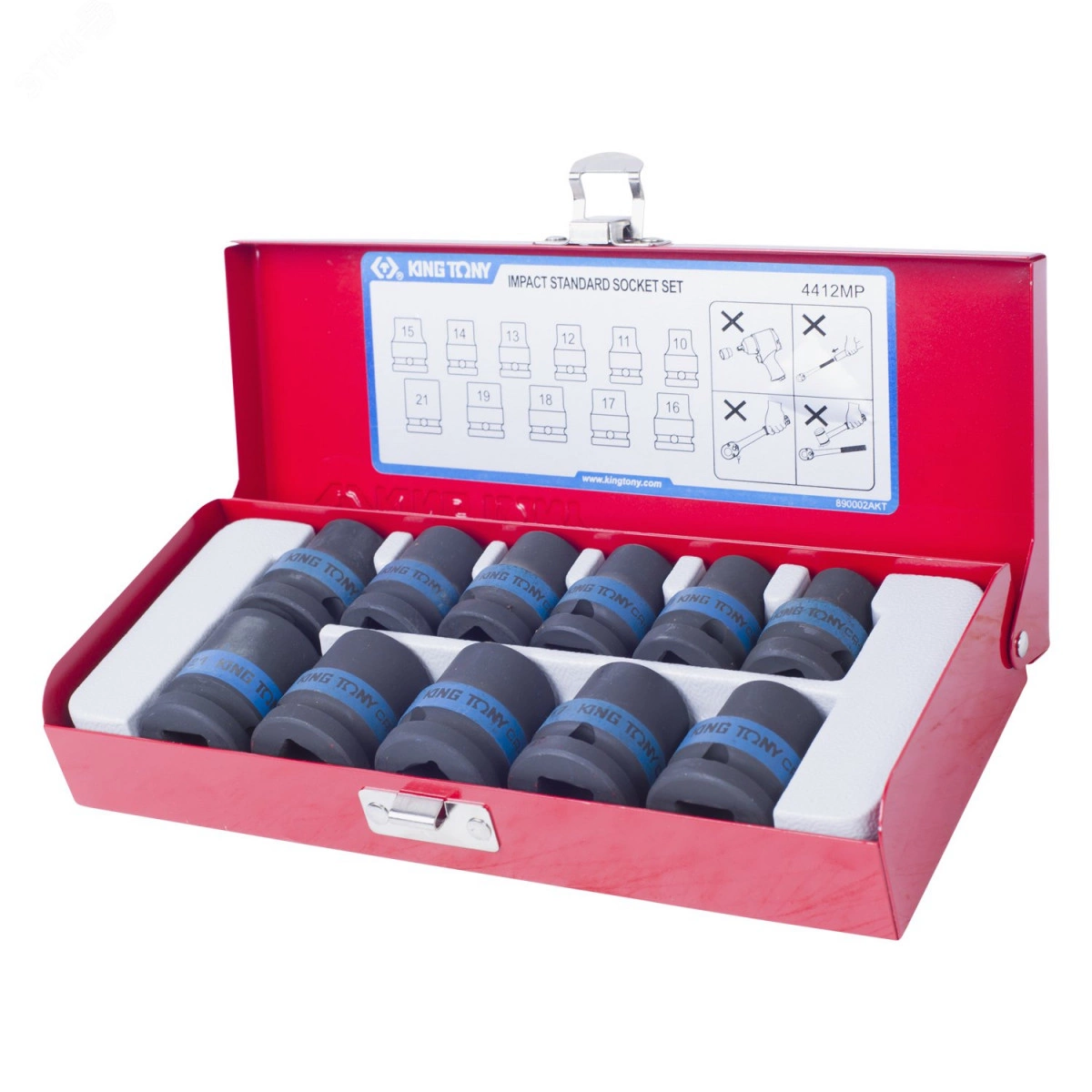 Набор ударных торцевых головок 1/2', шестигранные, 10-21 мм, 11 предметов