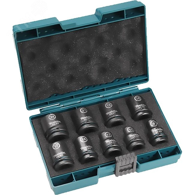 "Набор ударных торцовых головок Impact Black Makita E-16564. Набор состоит из 9 головок Impact Black 1/2"", (8, 10, 13, 16, 17, 18, 19, 21, 24 мм). Работают с ударным инструментом. Набор используется при проведении слесарных и монтажных работ в мастерских и на производствах. Для удобства хранения и транспортировки прилагается пластиковый кейс. Выполнены из высококачественно материала, имеют длительный ресурс работы."