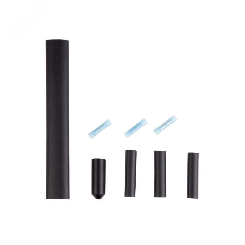 Готовый набор REXANT предназначен для герметизации соединения саморегулирующегося греющего кабеля с кабелем питания и герметичной заделки противоположной стороны кабеля. Герметизация выполняется при помощи термоусаживаемой трубки с внутренним клеевым слоем. Комплект поставки -1. 18х200 мм внешняя термоусадочная трубка с клеевым слоем. 2. 12х40 мм концевая термоусадочная заглушка (колпачок). 3. 9х50 мм х 3шт. термоусадочная трубка с клеевым слоем. 4. 3 шт. гильзы 2,5 кВт в нейлоновой оболочке.