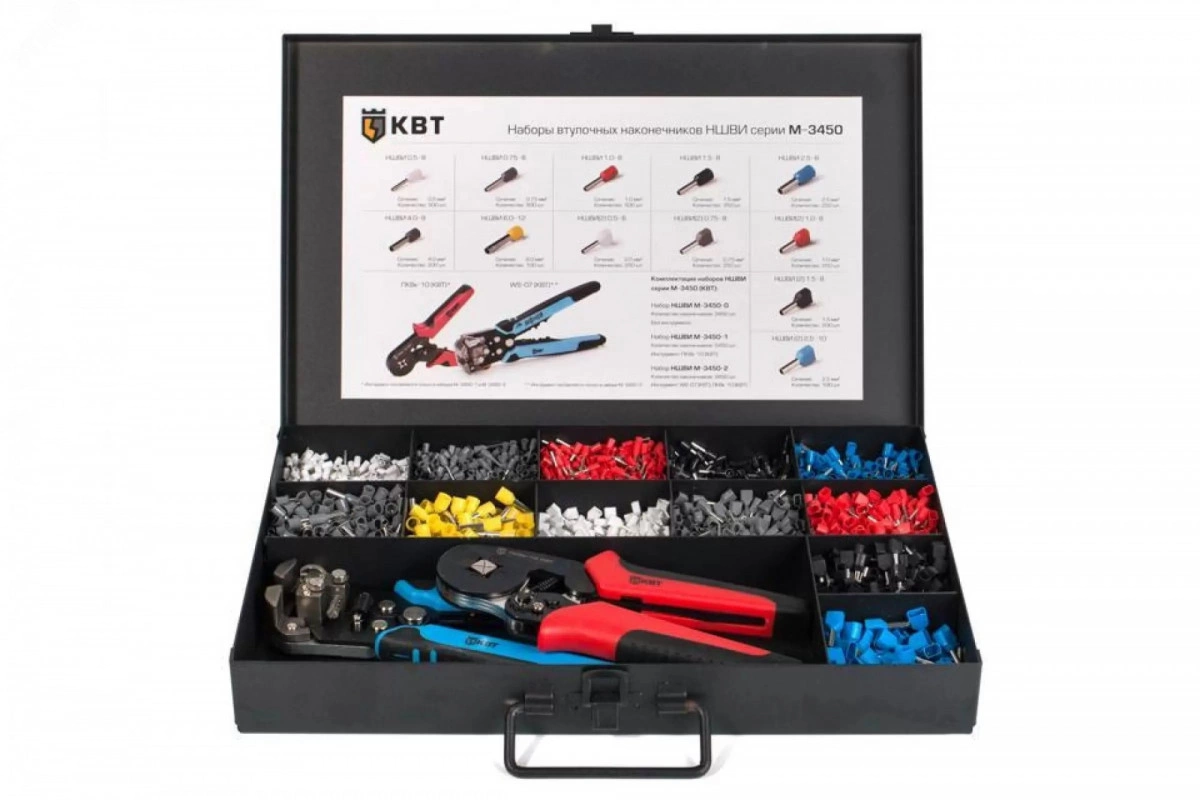 Набор содержит наиболее популярные размеры одинарных и двойных втулочных наконечников с универсальным инструментом для опрессовки втулочных наконечников и стриппером для снятия изоляции. Цвет изолирующих манжет одинарных и двойных втулочных наконечников выполнен в соответствии с DIN 46228, часть 4, набор упакован в прочный долговечный металлический кейс с 12 отделениями для втулочных наконечников и большим отделением для хранения инструмента. Габариты стального кейса - 328х220х42 мм. Вес набора (без инструмента) - 2.2 кг. Вес ПКВк-10 - 370 г. Вес WS-07 - 340 г