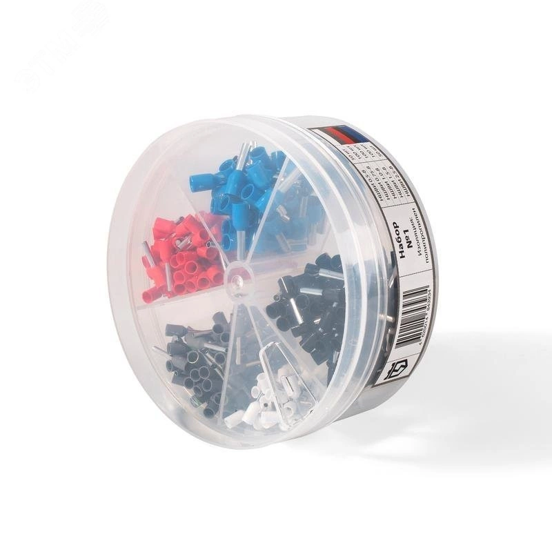 Коробка выполнена из противоударного пластика. Вращающаяся крышка с окном подачи наконечников гарантирует быстрый выбор нужного размера. Каждый из наборов содержит диапазон наиболее востребованных типов и размеров втулочных наконечников целевого назначения. Подвижная крышка имеет бортики и может использоваться в процессе монтажа как рабочая поверхность для временного хранения наконечников. При небольшом наклоне наконечники легко возвращаются в нужное отделение. Прозрачный пластик позволяет осуществлять визуальный контроль содержимого. Цветовая маркировка изолирующих манжет облегчает идентификацию и выбор необходимого сечения. Благодаря компактным размерам, набор легко помещается в кармане или сумке монтажника. Пластиковая коробка может выполнять функцию органайзера для любых миниатюрных деталей. Специальный дизайн позволяет ставить коробки одна на другую, компактно организуя рабочее пространство. Размеры - диаметр — 90 мм высота — 40 мм. Вес набора - не более 85 г
