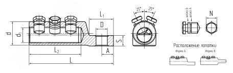Для оконцевания любого типа кабельных жил - алюминиевых и медных, круглых и секторных, моножильных и многопроволочных. Х-образное угловое расположение болтов соответствует стандартам и гарантирует механическую прочность соединения. Эксцентриковое отверстие под кабельную жилу в корпусе наконечника. Материал корпуса и болтов - специальный алюминиевый сплав. Крепление на жиле осуществляется методом завинчивания болтов со срывной головкой. Болтовые головки срываются при достижении установленного момента, обеспечивающего оптимальные механические и электрические свойства контактного соединения. Срыв головки происходит вровень или ниже поверхности наконечника. Лопатка болтовых наконечников 'КВТ' смещена относительно центральной оси и расположена на ступень ниже цилиндрического корпуса, Рифленая накатка на внутренней поверхности цилиндрической части наконечников увеличивает площадь и механическую прочность контактного соединения.