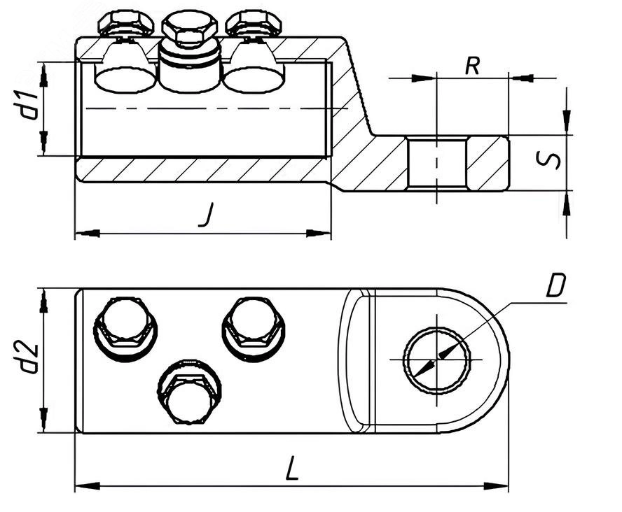 Наконечник болтовой луженый НБЛ 120-300-16/2 35кВ