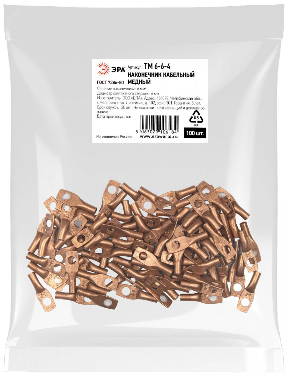 Наконечник кабельный ЭРА ТМ 6-6-4 медный ГОСТ 7386-80