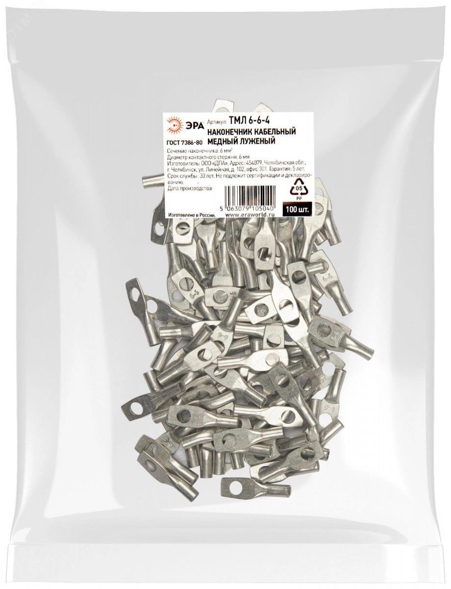 Наконечник кабельный ЭРА ТМЛ 6-6-4 медный луженый ГОСТ 7386-80