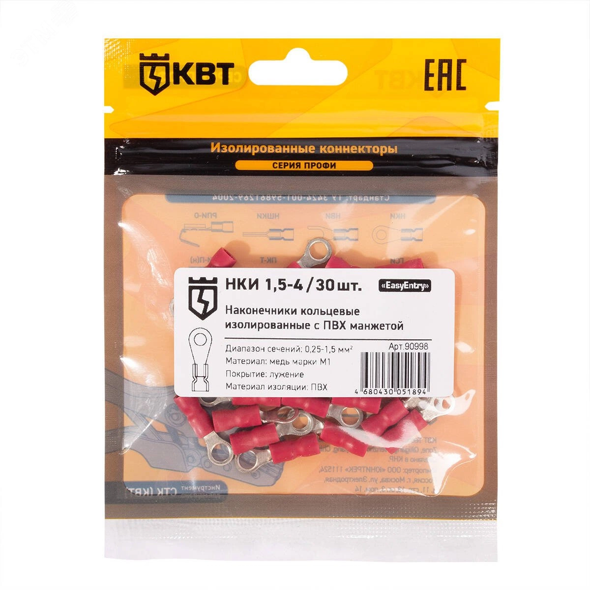 Наконечник кабельный кольцевой изолированный НКИ 1.5–4 (30 шт)