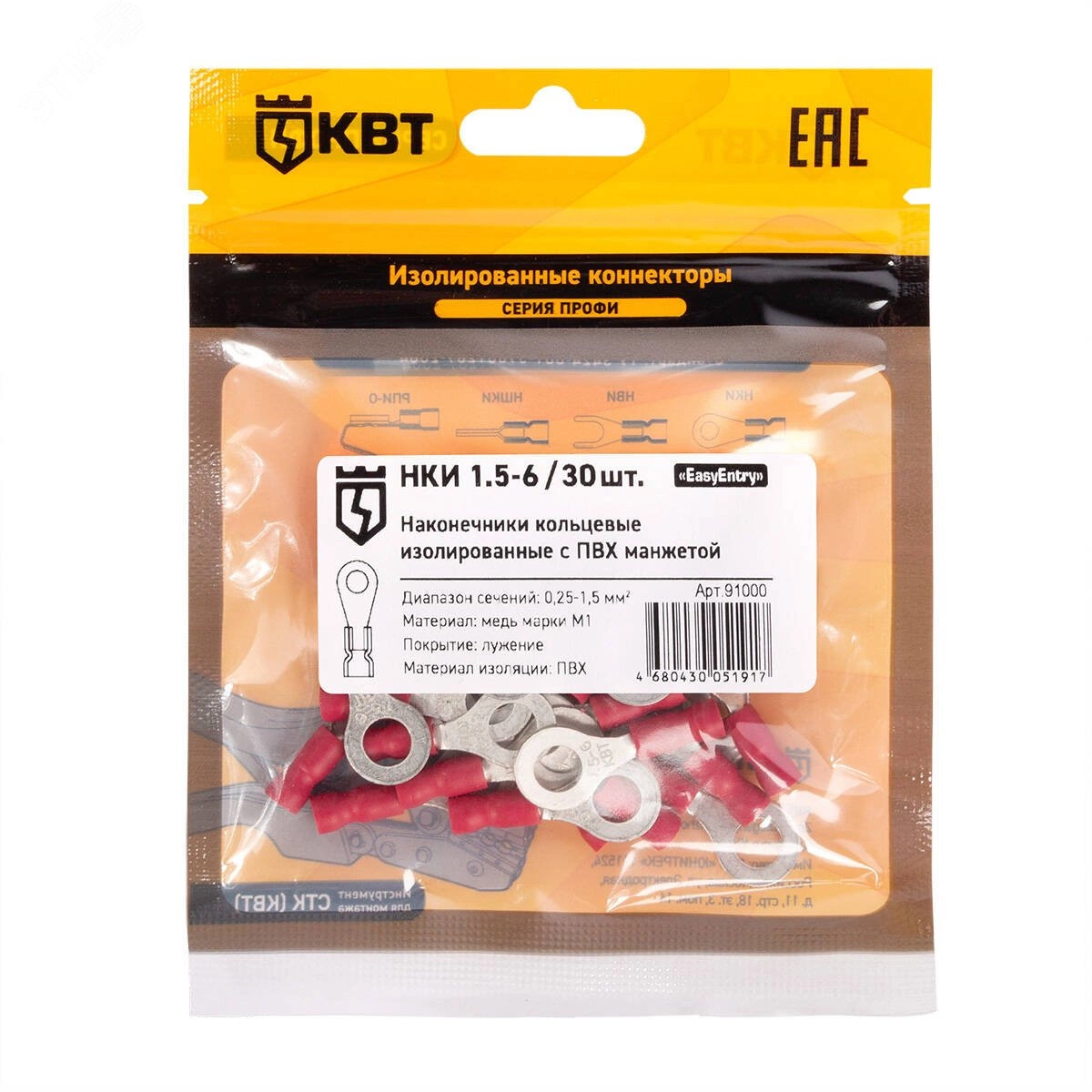 Наконечник кабельный кольцевой изолированный НКИ 1.5–6 (30 шт)