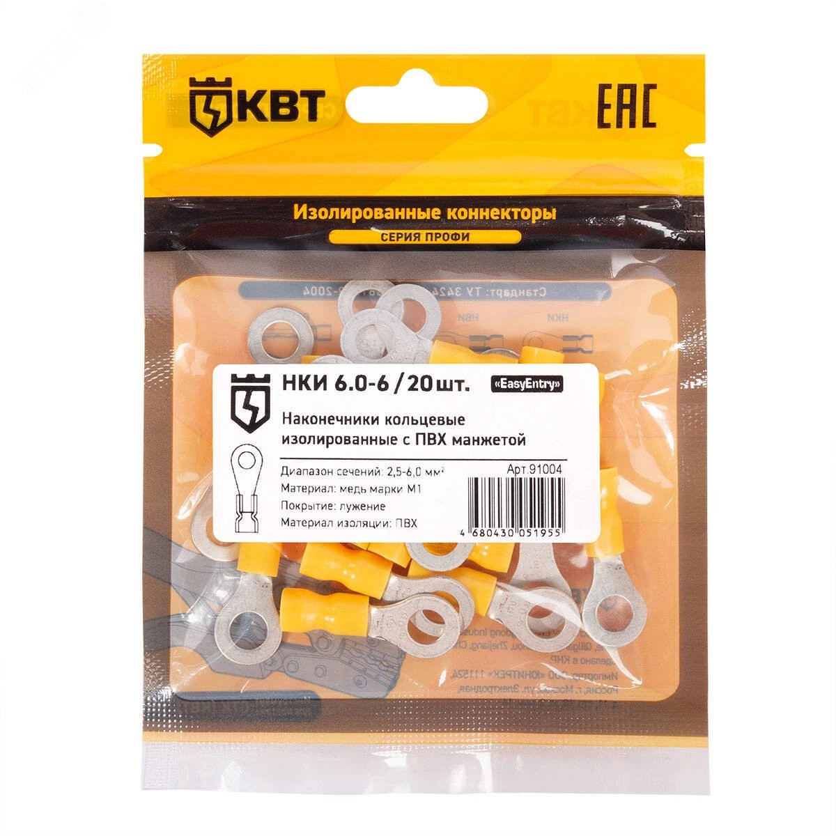 Полное описание: Наконечник кабельный кольцевой изолированный НКИ 6.0–6 (20 шт)