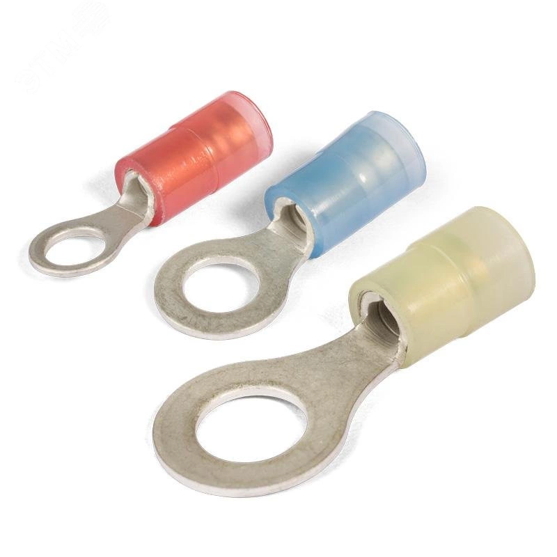 Предназначены для оконцевания опрессовкой медных проводов и последующего крепежа наконечников к клеммм электрического оборудования на основе винтовой фиксации. Материал изоляции - самозатухающий нейлон. Не содержит галогенов. Термостойкость изоляции - 105 градусов по Цельсию. Материал наконечника - медь марки М1. Покрытие наконечника - электролитическое лужение. Особенности конструкции дополнительная медная втулка увеличивает механическую прочность соединения с проводом на 25–30% и делает соединение вибростойким исполнение 'Easy Entry' - медная втулка образует конусообразный вход для быстрого заведения в клемм многопроволочных медных жил поперечные засечки на внутренней поверхности трубной части наконечников увеличивают механическую прочность соединения с жилой. дополнительная медная втулка увеличивает механическую прочность соединения с проводом на 25–30% и делает соединение вибростойким.