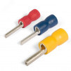 Предназначены для оконцевания опрессовкой медных проводов и последующего крепежа наконечников к клеммм электрического оборудования. Мультидиапазонная альтернатива втулочным наконечникам. Всего 3 размера штыревых наконечников заменяют 9 размеров втулочных. Материал изоляции - самозатухающий ПВХ. Класс V-0 по UL94. Термостойкость изоляции - 75 градусов по Цельсию. Материал наконечника - медь марки М1. Покрытие наконечника - электролитическое лужение. Особенности конструкции - исполнение 'Easy Entry' - виниловая манжета отформована в виде раструба для облегчения монтажа многопроволочных медных жил незаваренный стыковой шов на трубнодиаметр контактной частии наконечников поперечные засечки на внутренней поверхности трубной части наконечников увеличивают механическую прочность соединения с жилой.Расширенные мультиразмерные диапазоны опрессовки. Опрессовка проводника поверх изолирующей манжеты.