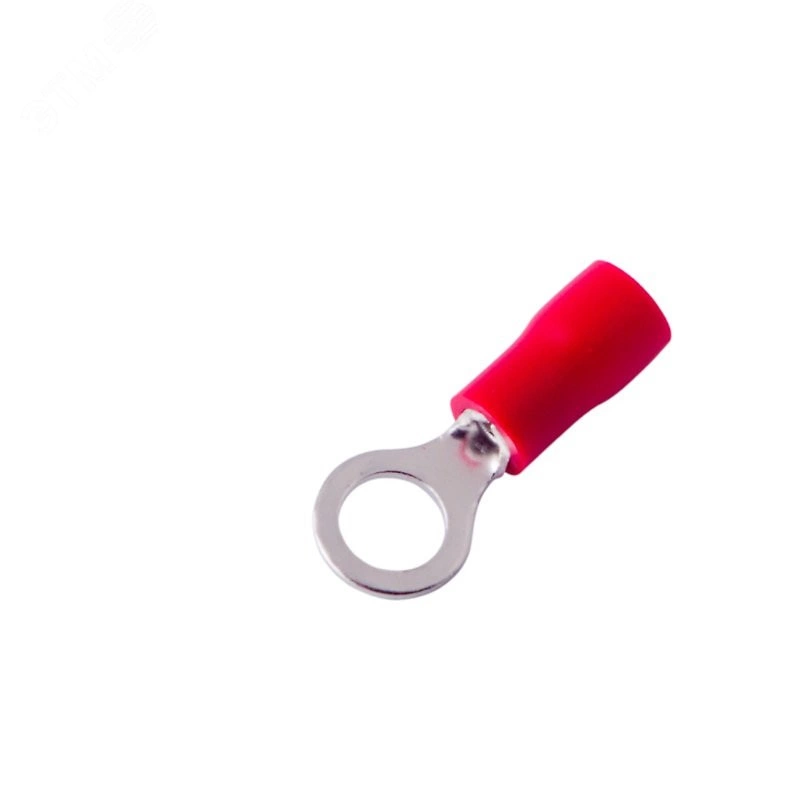 Наконечник кольцевой изолированный 0,5–1,5 мм предназначен для создания качественного подключения электрооборудования, которое осуществляется через контактное соединение на основе винтовой фиксации. Такая клемма используется для оконцевания многожильных медных проводов при монтаже мобильных электрических контактных соединений на подвижном составе (в автомобиле-, вагоно-, самолето- и судостроении) или в других местах, где важна надежность соединения. Изолированный кольцевой наконечник состоит из металлического коннектора и защитного изолятора. Металлический коннектор изготовлен из меди с поверхностным электролитическим лужением, а изолятор клеммы из поливинилхлорида (ПВХ), который надежно защищает место обжима кабеля. Обжатие производится специальными пресс-клещами поверх защитного изолятора.