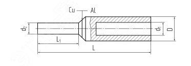Предназначены для оконцевания опрессовкой алюминиевых кабелей и проводов и последующего подключения их к выводам автоматических выключателей и прочим устройствам с ограниченной шириной контактной клемм. Материал - электротехнический алюминий марки АД1 и медь марки М1. Медная и алюминиевая части наконечника соединены между собой методом фрикционной сварки и обеспечивают контакт металлов на молекулярном уровне. Обеспечивают прямое подключение проводов СИП к автомату без использования дополнительных приспособлений. На трубной части наконечников нанесена разметка, определяющая местоположение и количество опрессовок
