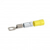 Предназначен для оконцевания медных/алюминиевых многопроволочных жил кабелей/проводов в электрических цепях переменного/постоянного тока напряжением до 600 В. Контактная часть выполнена из высококачественной меди марки М1. Лужение исключает образование гальванической пары. Внутренняя часть гильзы имеет радиальные насечки, повышающие плотность контакта. Изоляция из ПВХ выдерживает температуру до 85 градусов C. Класс горючести - V0, стандарт UL 94. Двойная гильза обеспечивает наилучший электрический контакт и повышает виброустойчивость соединения. Рекомендованы для регионов с повышенной сейсмической активностью и на производственных объектах. Цвет - желтый. Сечение: 4-6 мм2. Диаметр отверстия клеммы 8,4 мм. Метиз - М8. Форма контактной части - кольцо.