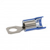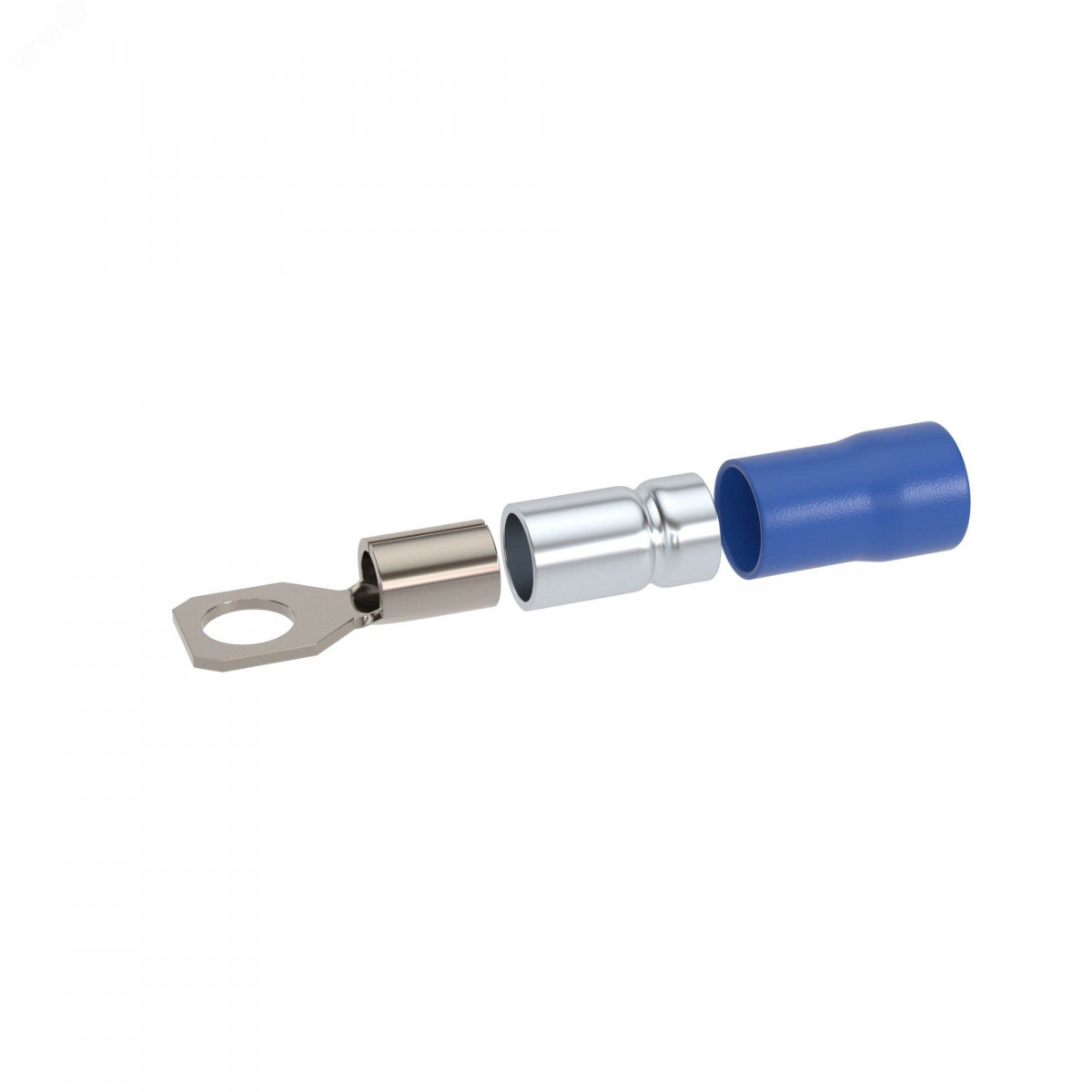 Предназначен для оконцевания медных/алюминиевых многопроволочных жил кабелей/проводов в электрических цепях переменного/постоянного тока напряжением до 600 В. Контактная часть выполнена из высококачественной меди марки М1. Лужение исключает образование гальванической пары. Внутренняя часть гильзы имеет радиальные насечки, повышающие плотность контакта. Изоляция из ПВХ выдерживает температуру до 85 градусов C. Класс горючести - V0, стандарт UL 94. Двойная гильза обеспечивает наилучший электрический контакт и повышает виброустойчивость соединения. Рекомендованы для регионов с повышенной сейсмической активностью и на производственных объектах. Цвет - синий. Сечение: 1,5-2,5 мм2. Диаметр отверстия клеммы 5,3 мм. Метиз - М5. Форма контактной части - кольцо.