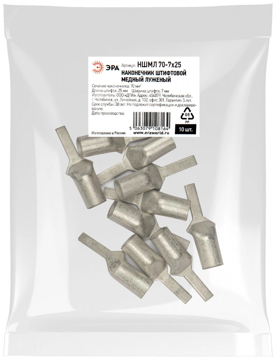 Наконечник штифтовой ЭРА НШМЛ 70-7х25 медный луженый