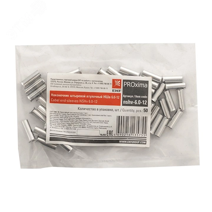 Наконечник-гильза НГ 6.0-12 без изоляции (20шт)