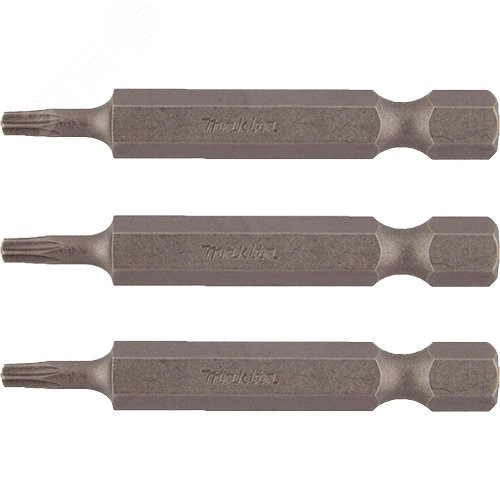 Биты Torx T40, 50 мм, E-form (MZ), 3 штуки, Makita B-25432. Набор бит Makita применяют для закручивания и демонтажа крепежа при проведении ремонтных и строительных работ. Модель рассчитана на интенсивное использование и характеризуется продолжительным сроком службы. Высокопрочный сплав устойчив к коррозии и механическому воздействию. Биты сохраняют первоначальную форму в течение длительного времени. Шлицы обеспечивают надежное сцепление с крепежом, что значительно снижает риск соскальзывания оснастки с монтажного элемента. Насадка прочно фиксируется в патроне инструмента. Это позволяет избежать прокручивания модели и создает комфортные условия для эксплуатации.