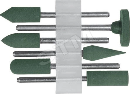 Для гравировальной машины. В наборе 6 шт. Предназначены для шлифовки и полировки изделий из камня, мрамора и стекла. Зернистость - P180. D хвостовика-3,1 мм. Материал - резина, хвостовик из инструментальной стали, карбид кремния. Упаковка - блистер.