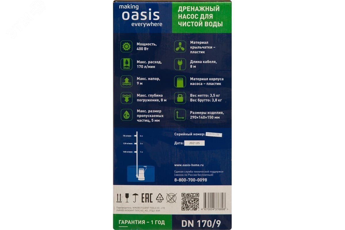 Погружные дренажные насосы `making oasis everywhere` предназначены для откачивания воды из колодцев, погребов, прудов, откачки бассейнов, различных резервуаров и т. п. Дренажные насосы позволяют просто и эффективно справиться с проблемой затопления, ежегодно возникающей при таянии снега на дачном участке. Добываемая дренажными насосами вода может использоваться для полива и орошения.
