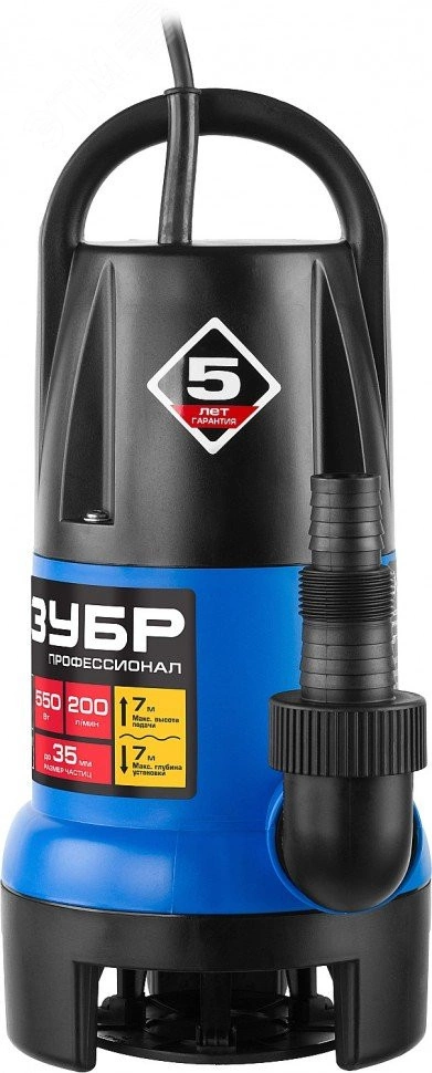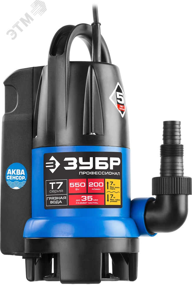 Насос дренажный Профессионал АкваСенсор НПГ-Т7-550 ЗУБР для грязной воды, 550 Вт