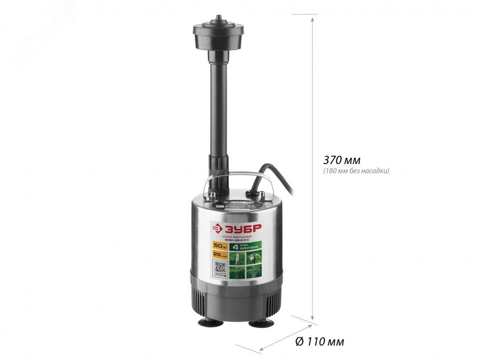 Полное описание: Насос фонтанный ЗНФЧ-29-2.3-С ЗУБР, 50 Вт, корпус нерж.сталь