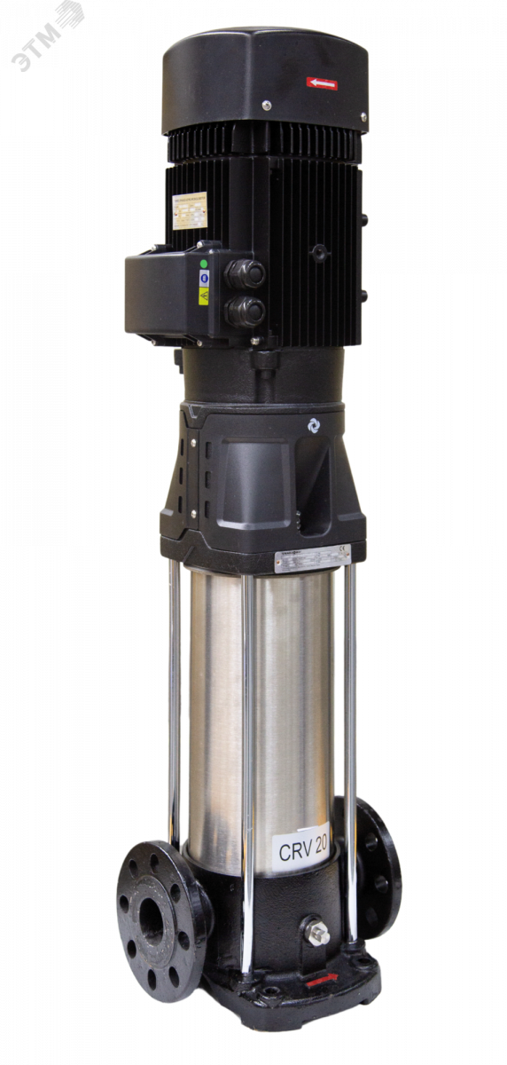 Насосы CRV представляют собой вертикальные многоступенчатые центробежные насосы. Конструкция «ин-лайн» позволяет устанавливать насос на горизонтальном однотрубном трубопроводе с соосным горизонтальным расположением всасывающего и напорного патрубков одинакового размера. Такая схема расположения обеспечивает более компактную конструкцию насоса.