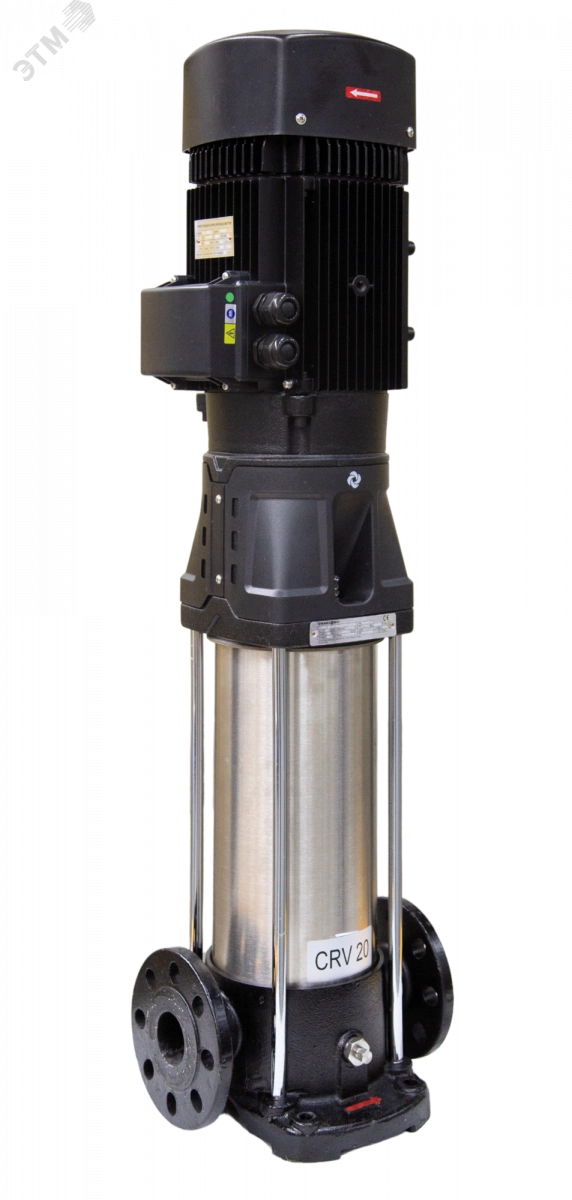 Насосы CRV представляют собой вертикальные многоступенчатые центробежные насосы. Конструкция «ин-лайн» позволяет устанавливать насос на горизонтальном однотрубном трубопроводе с соосным горизонтальным расположением всасывающего и напорного патрубков одинакового размера. Такая схема расположения обеспечивает более компактную конструкцию насоса.