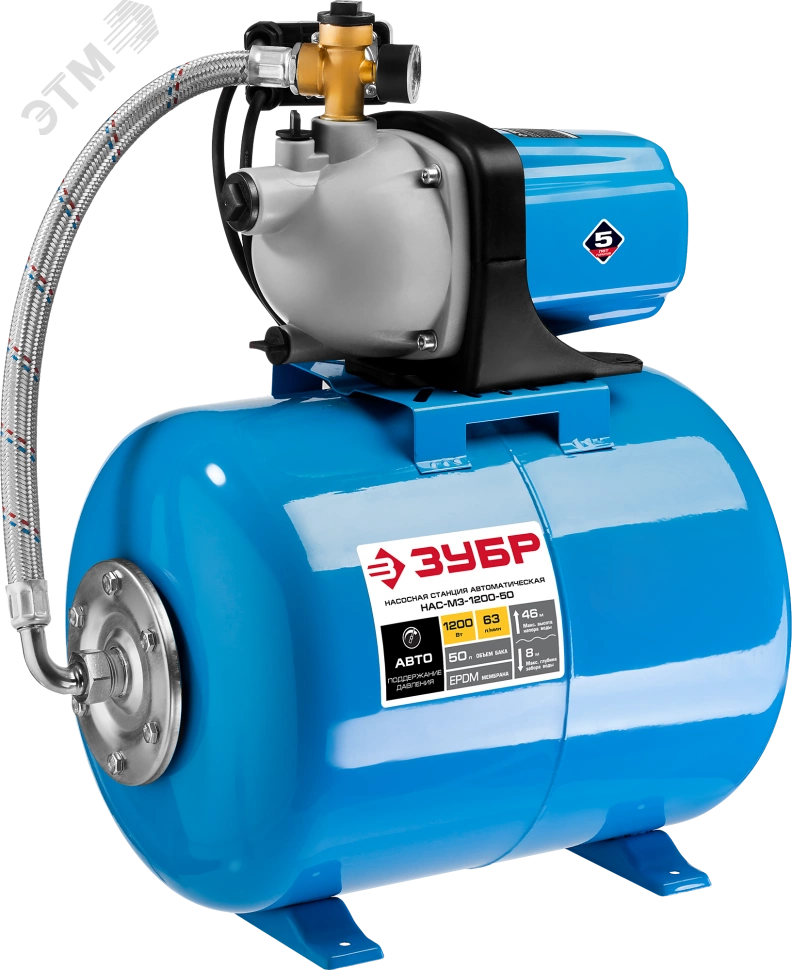 Полное описание: Насосная станция автоматическая НАС-М3-1200-50 ЗУБР, бак 50 л, 1200 Вт