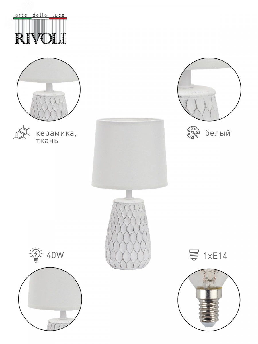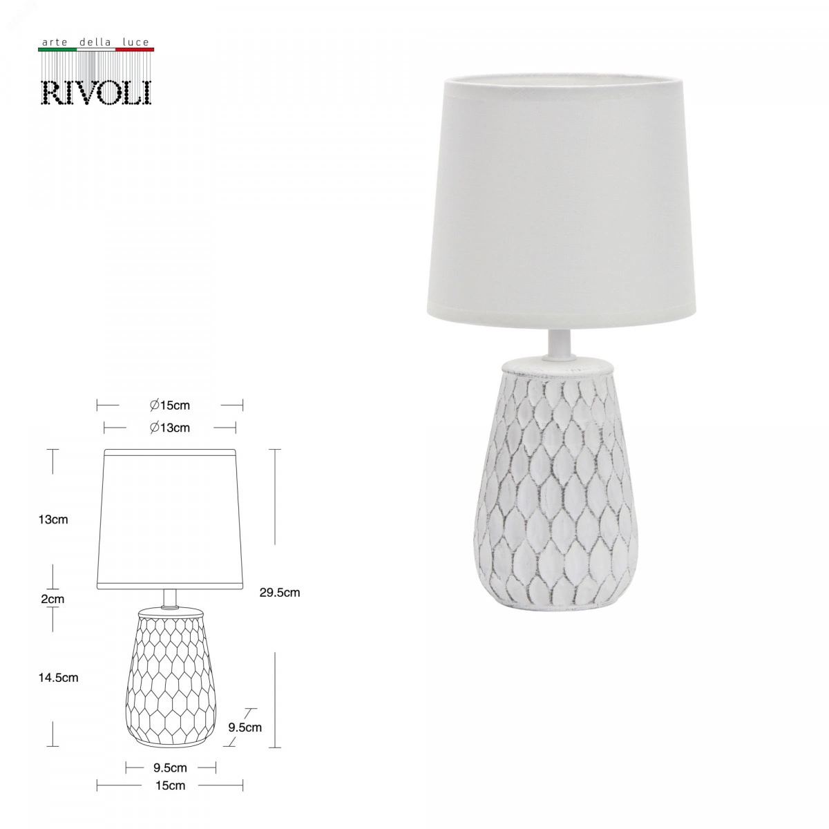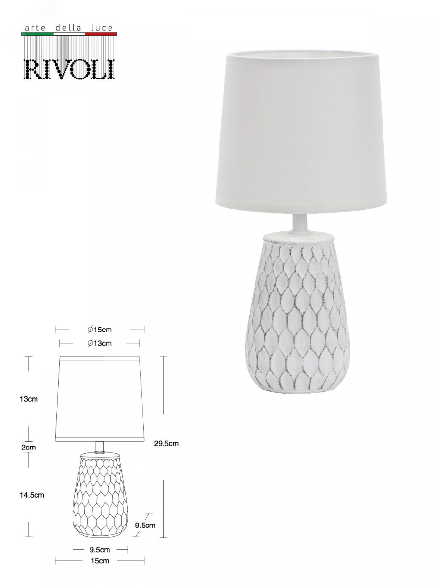 Настольная лампа Rivoli керамическая Rivoli Bella (арт. 7071-502) белая, с классическим тканевым абажуром и декоративным основанием из керамики. Красивый выпуклый узор основания лампы на стол напоминает пчелиные соты. Коллекцию дополняет настольный светильник Rivoli Bella с керамическим основанием черного цвета - арт. 7071-501.